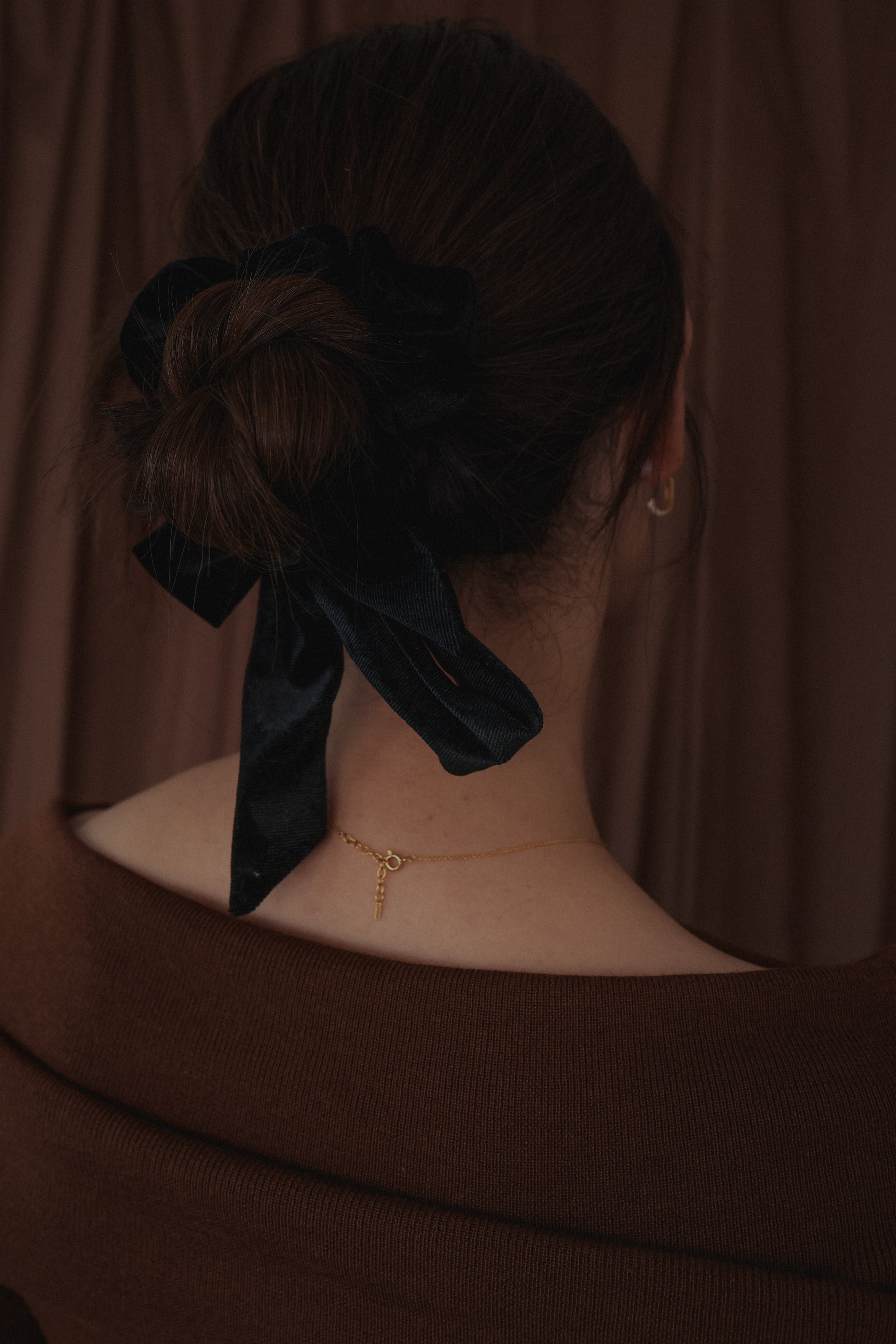 高級感あるベロア素材のリボンシュシュ。